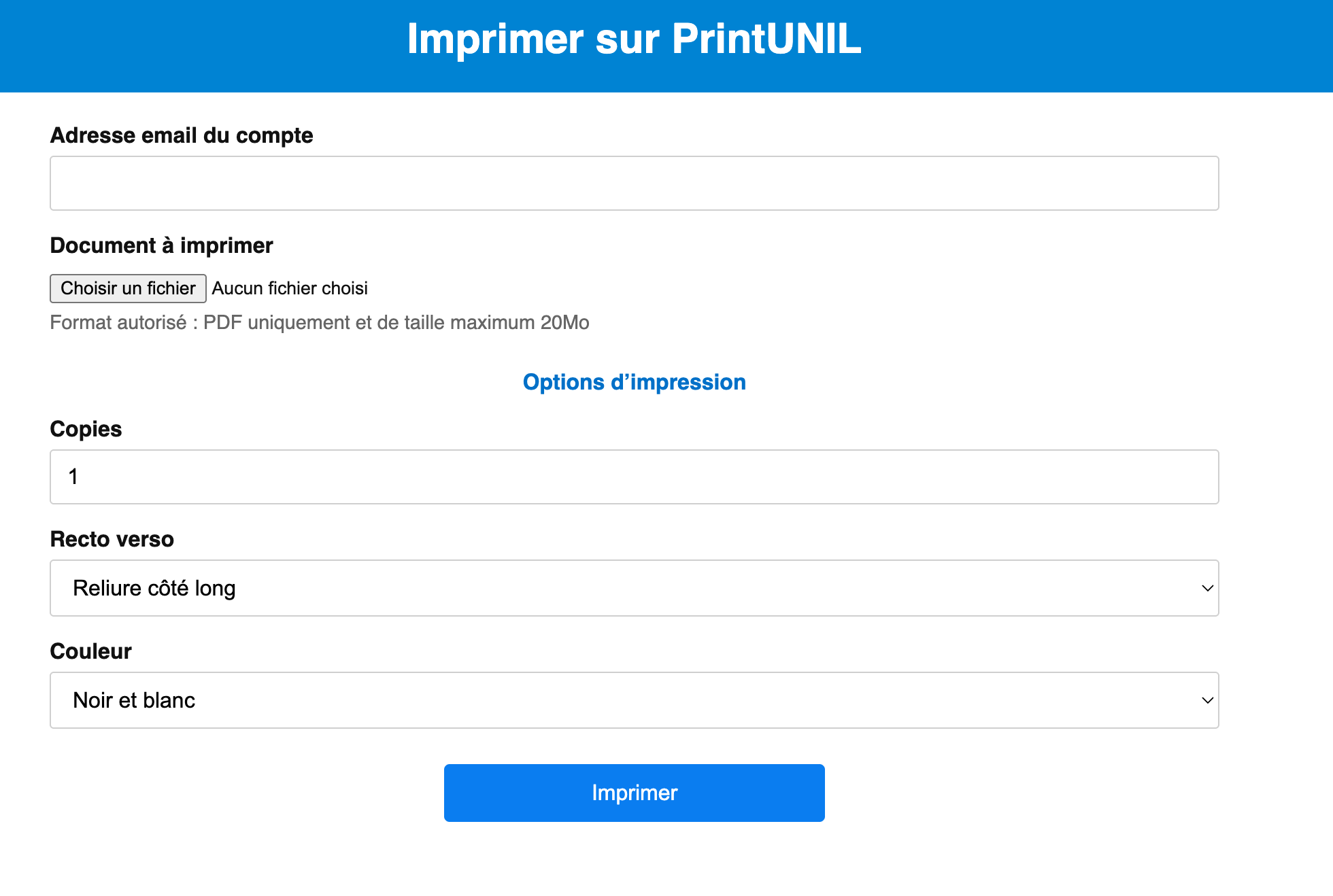 printunil.go.unil.ch/printci-webprint VousEntreridentifiervotreavecadressevos accès UNILemail- Sélectionner un document PDF