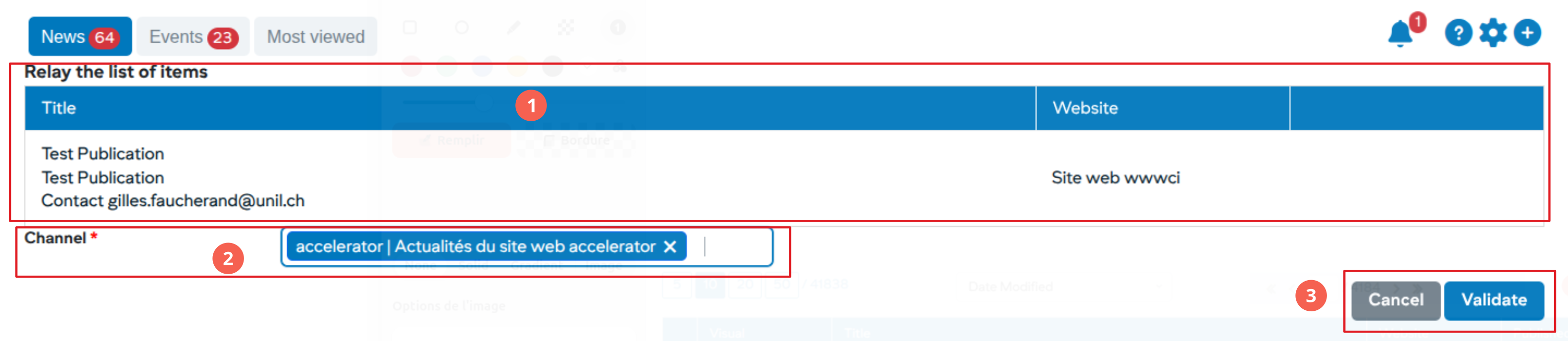 - Choose the channel (s) in which to relay the elements