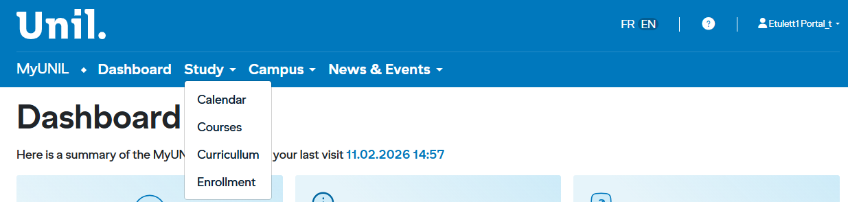 Log in to MyUNIL and select Enrollment from the navigation menu. The main page shows the available services in a table with the following columns: