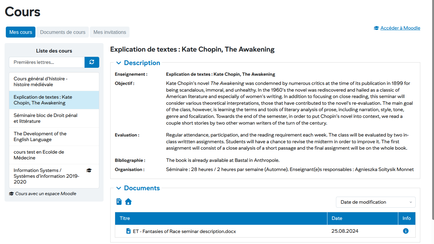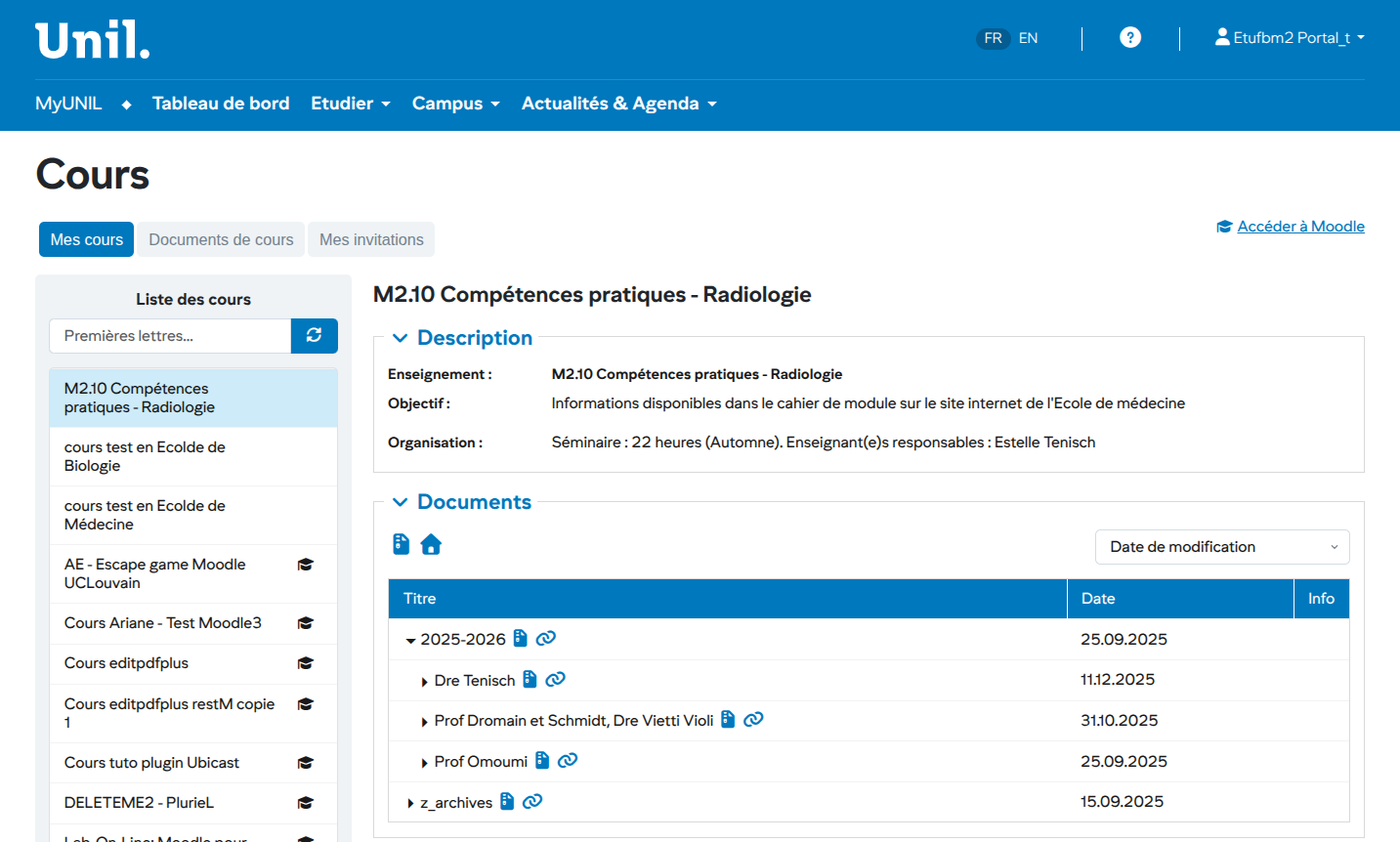 Les étudiants peuvent accéder à tous les documents de cours déposés par l’enseignant si celui utilise MyUNIL pour la gestion des documents de cours.