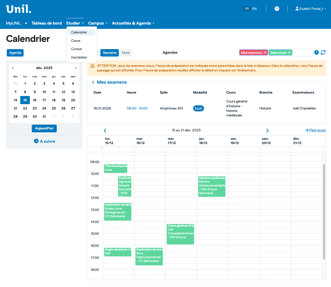- En période d'examens, vérifiez attentivement les salles attribuées.