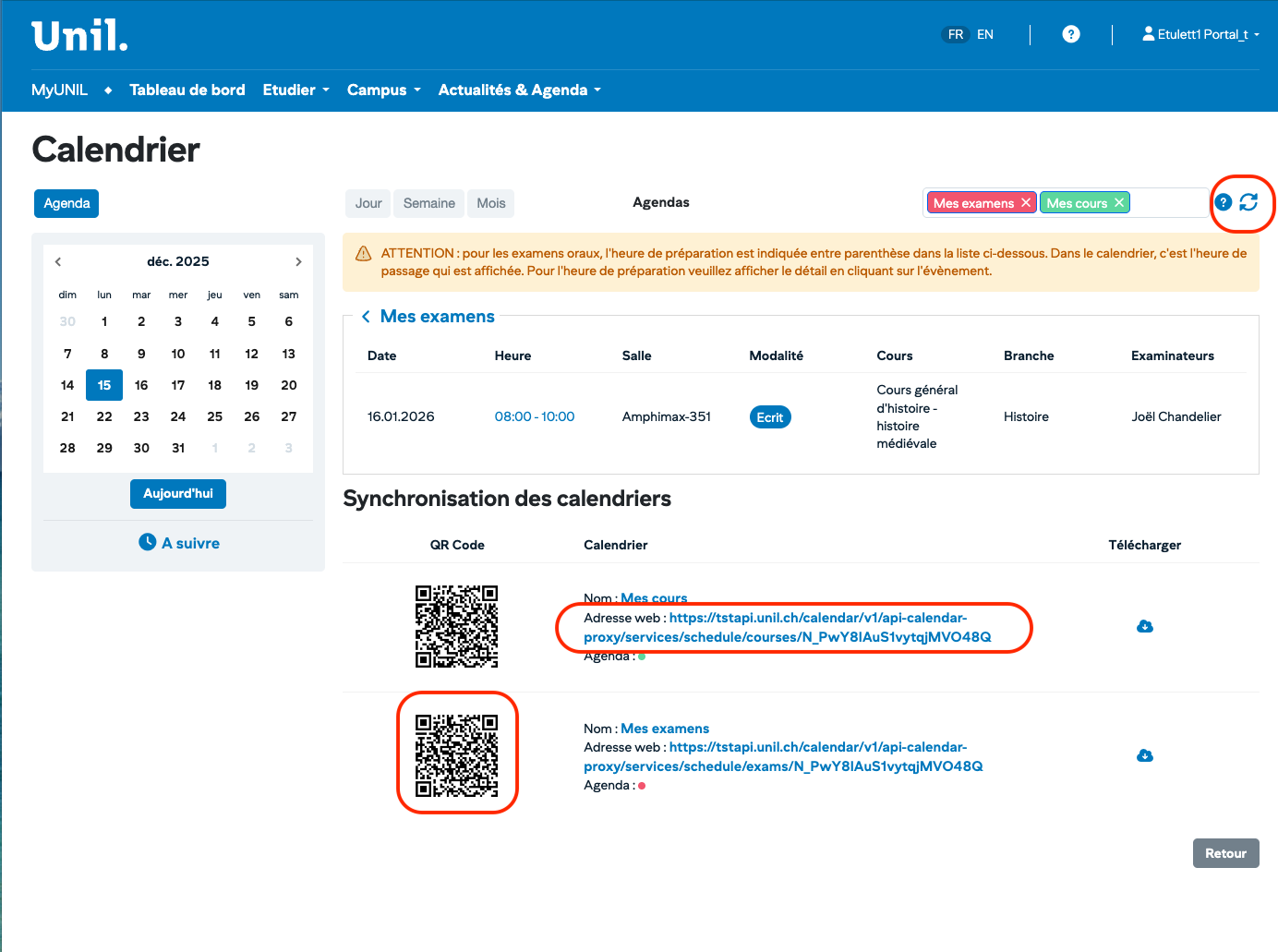 Accéder et synchroniser ses calendriers (cours, examens)