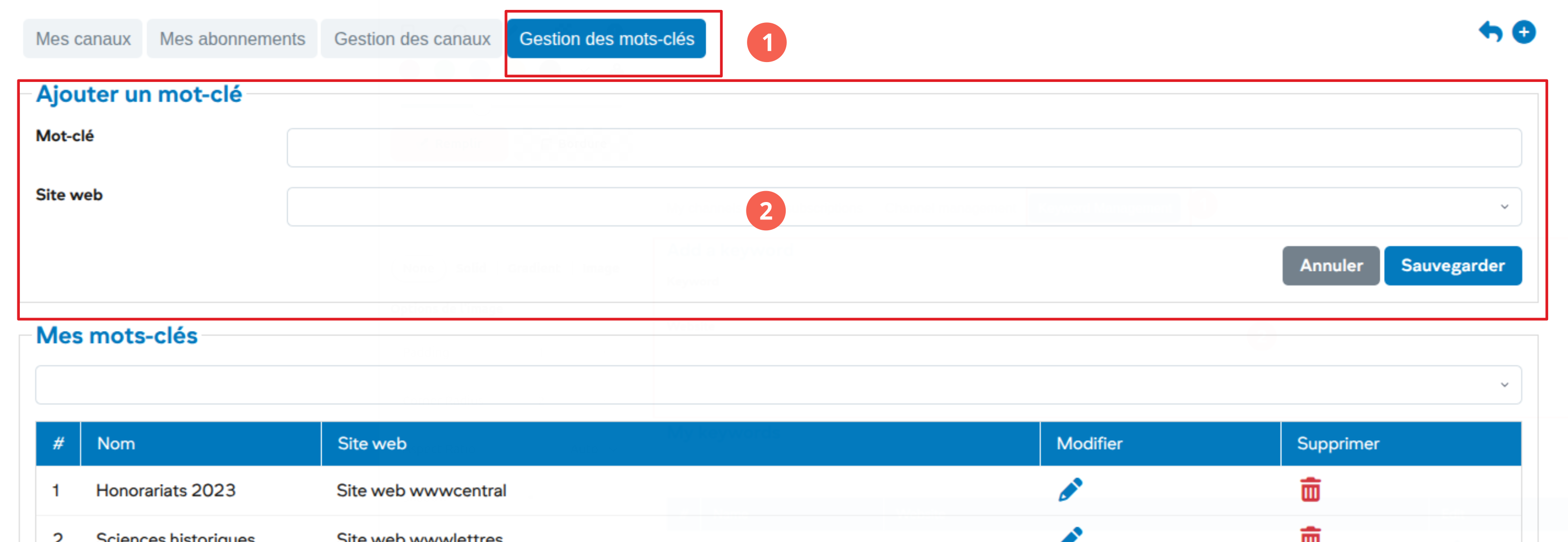 Une fois ajouté au système, le nouveau mot-clé sera utilisable par tous les canaux.