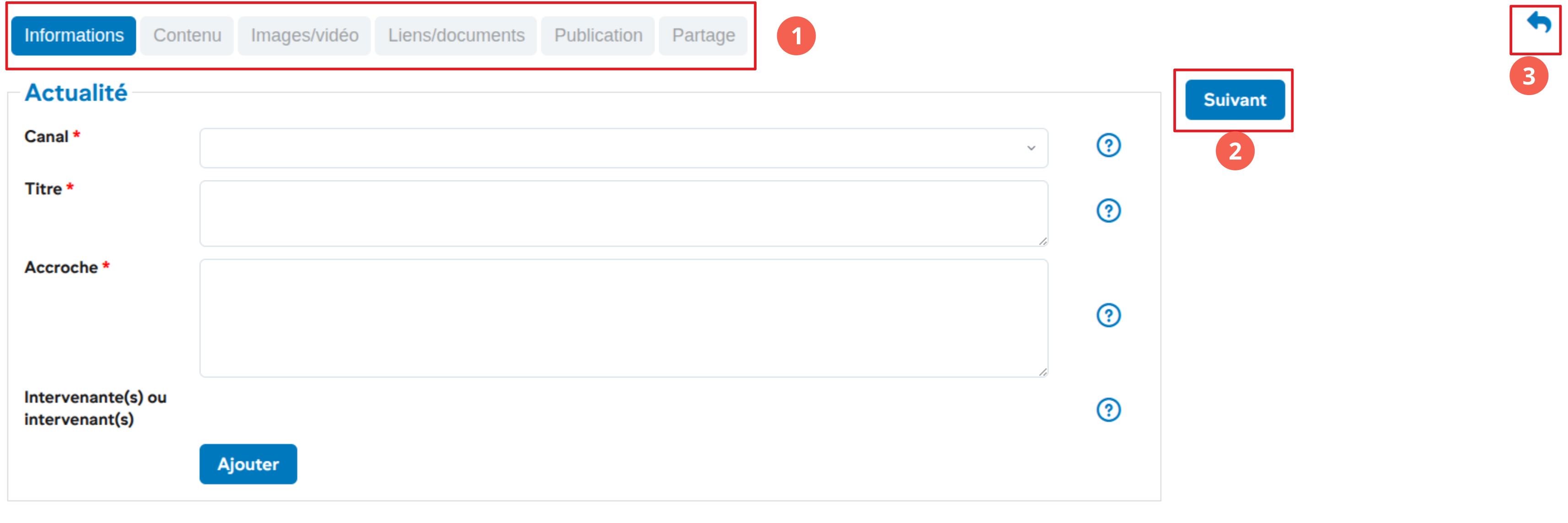- Contenu: Saisie du contenu de l’actualité