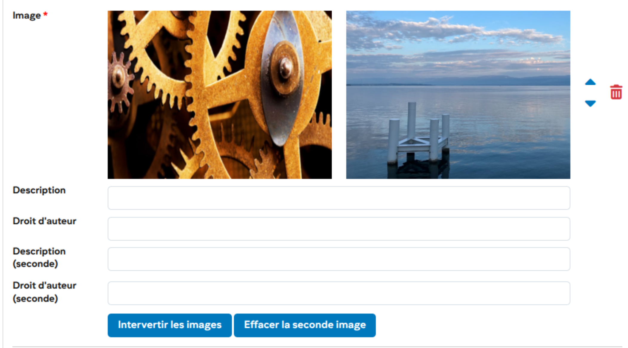Une fois la première image ajoutée, il est possible d'en ajouter une deuxième à l'aide du bouton Ajouter une seconde image, les deux images seront alors présentées côte à côte :