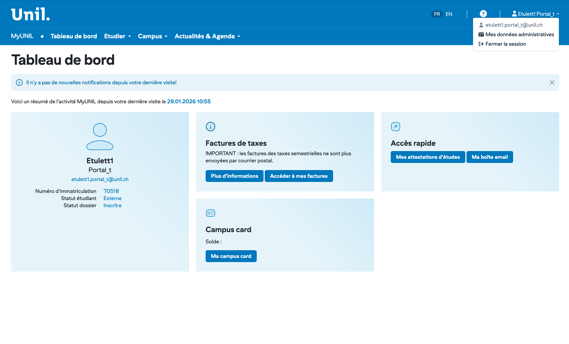 Accès : Menu MyUNIL → Tableau de bord