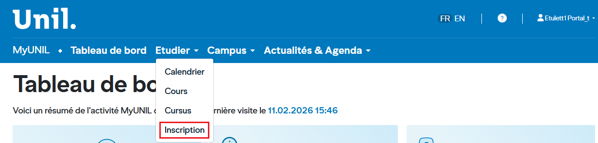 Rendez-vous sur MyUNIL puis cliquez sur Inscription dans le menu de navigation. La page principale affiche la liste des services disponibles sous forme de tableau avec les colonnes suivantes :