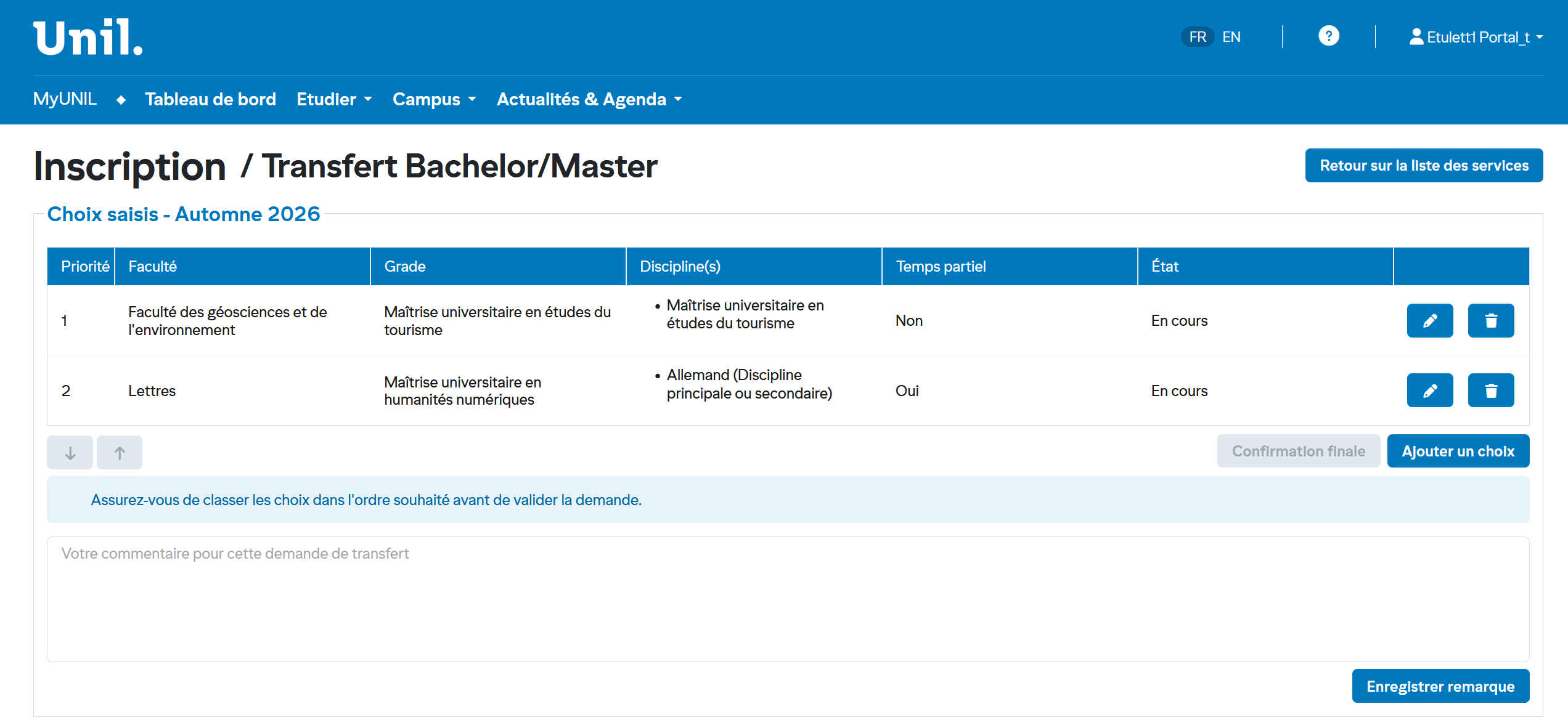 1. Accéder au service transfert bachelor/master