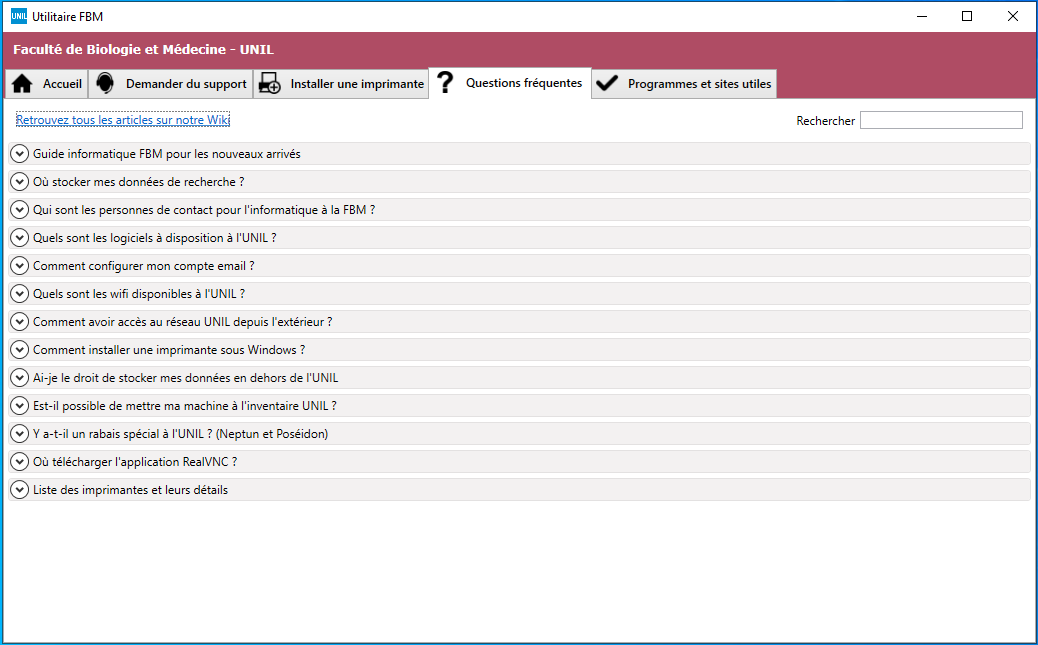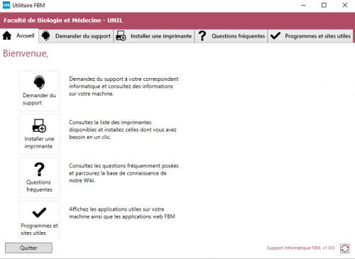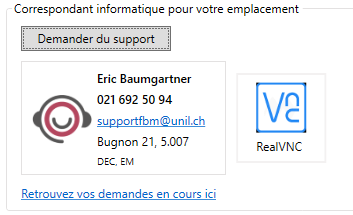 Click on Support request to write a message to the FBM support (supportfbm@unil.ch).