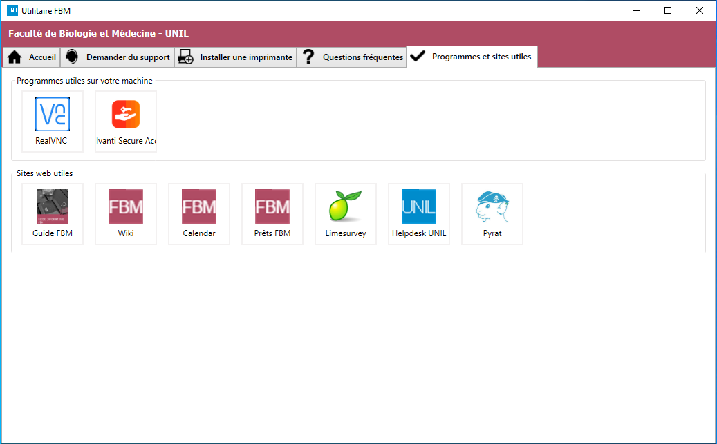 - Select the Software and useful websites tab to find the support software installed on your computer and shortcuts to the FBM web applications available to you.