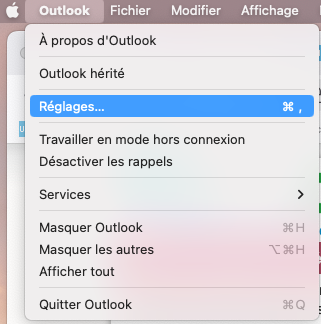 - Open Outlook, go to the Outlook menu and choose Settings.