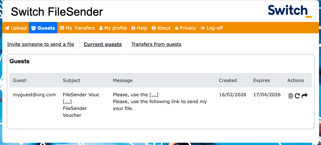 Invite people to send you a file with SWITCH filesender