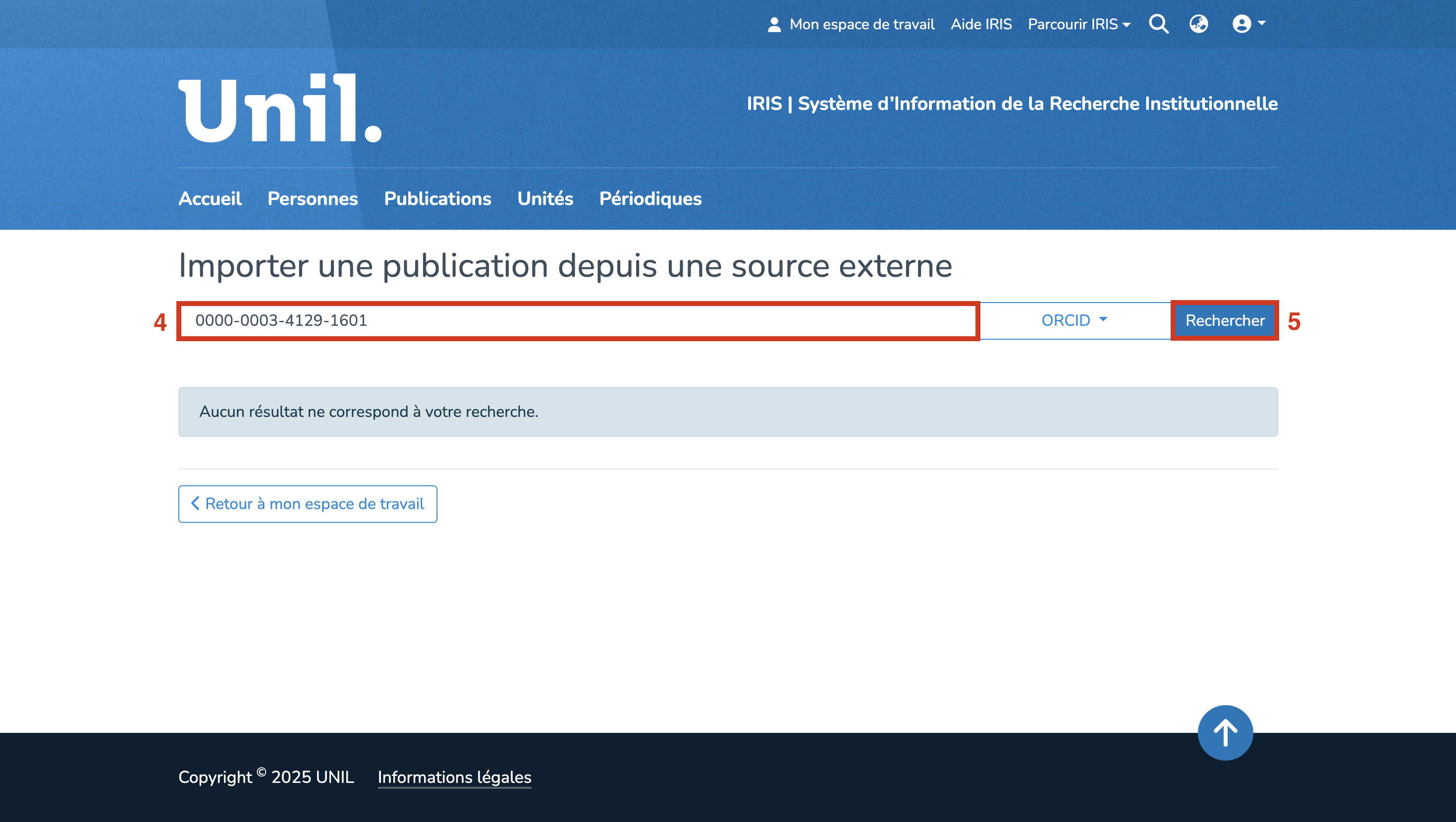 Importation de publications depuis ORCID dans IRIS depuis une source externe