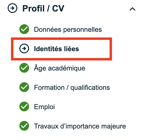 Vous reviendrez automatiquement à la section « Identités liées » : un message de confirmation vous indiquera que la liaison avec ORCID a été effectuée avec succès.