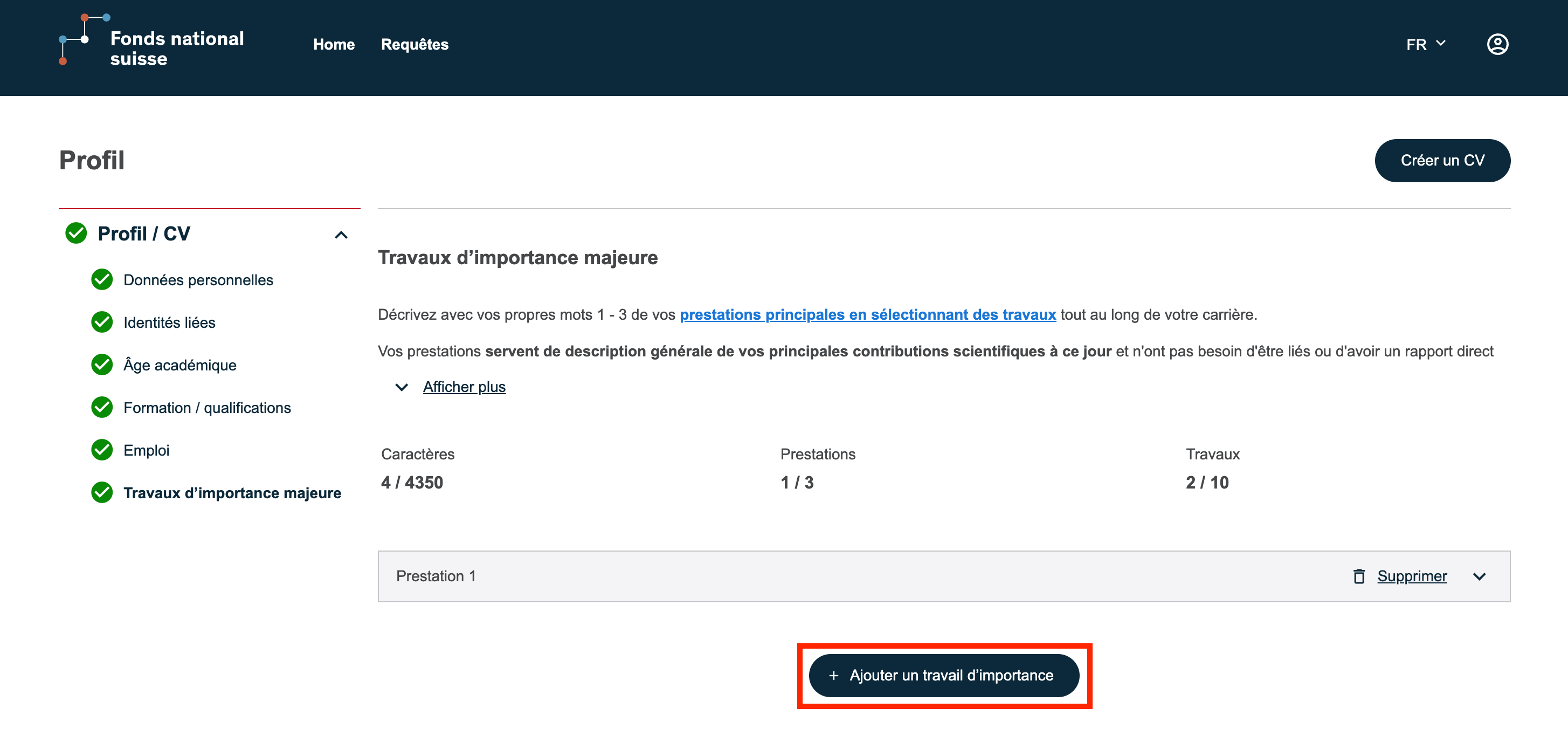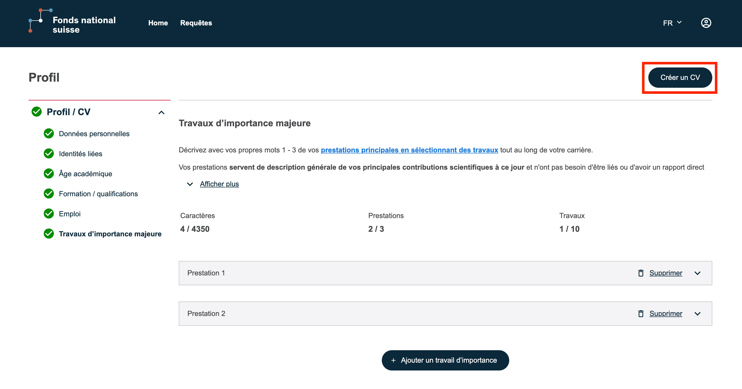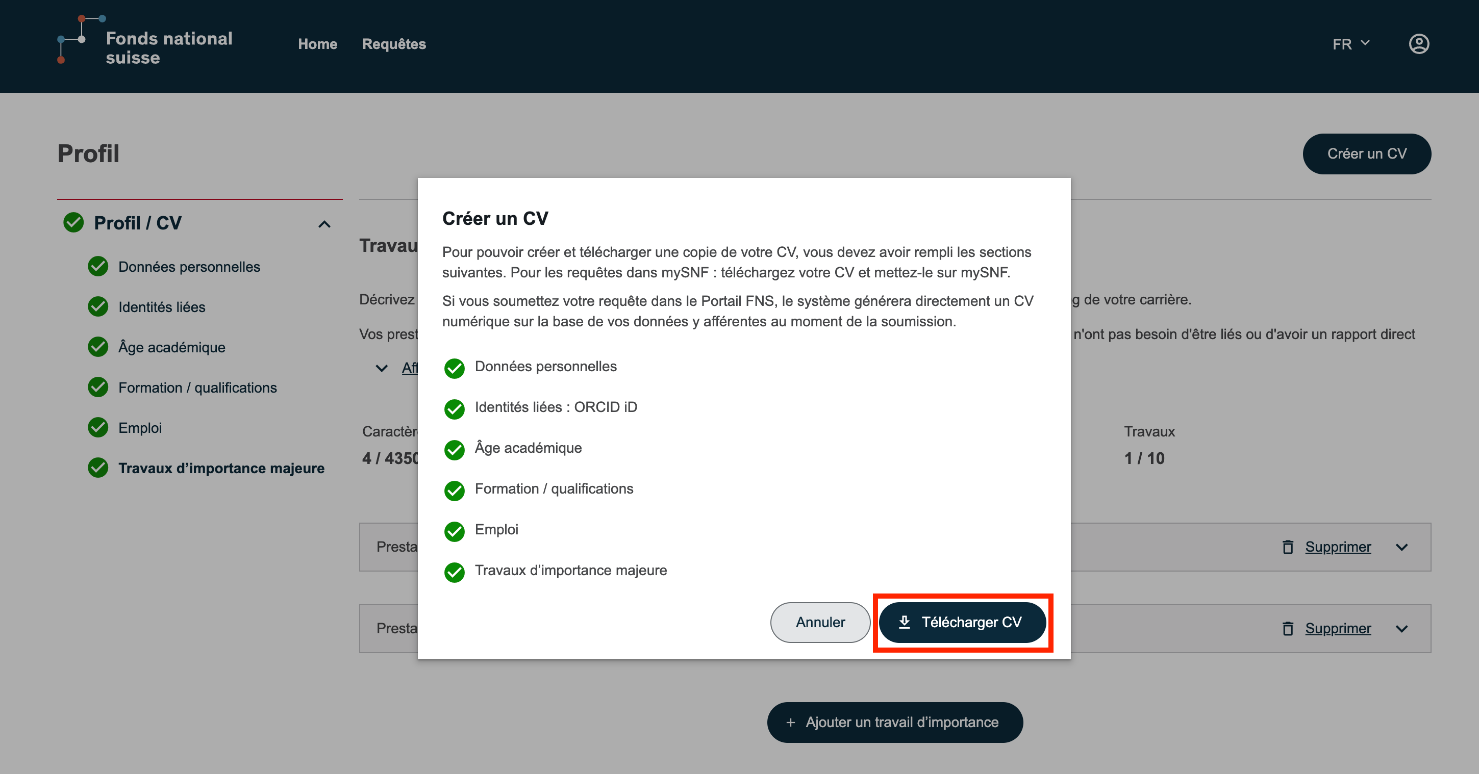 Le portail FNS vous permet également de générer automatiquement un CV académique à partir des informations renseignées dans votre profil.